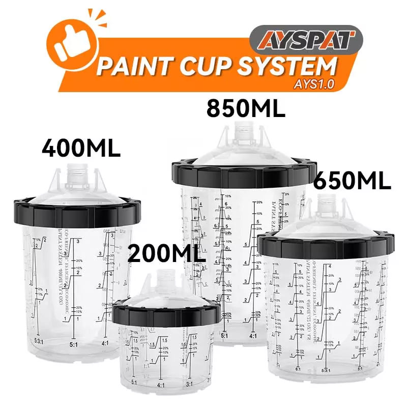 Системата за чаши за боя за еднократна употреба AYSPAT 200ML 1.0 е проектирана въз основа на нарастващото търсене от бояджиите за по-ефективно боядисване. Може да спести разходи и да реализира многоъгълно рисуване. Горещо препоръчваме да се използва в ситуации на боядисване като автомобили, промишленост, дома и други области. Потърсете чашата за пистолет за еднократна употреба, произведена в Китай, която ще ви донесе незабравимо изживяване при рисуване. Ние сме производител източник на система за чаши за боя за еднократна употреба, можете да се свържете с нас чрез официалния уебсайт или социалните медии. Можем също така да предоставим безплатен дизайн и доставка на проби.