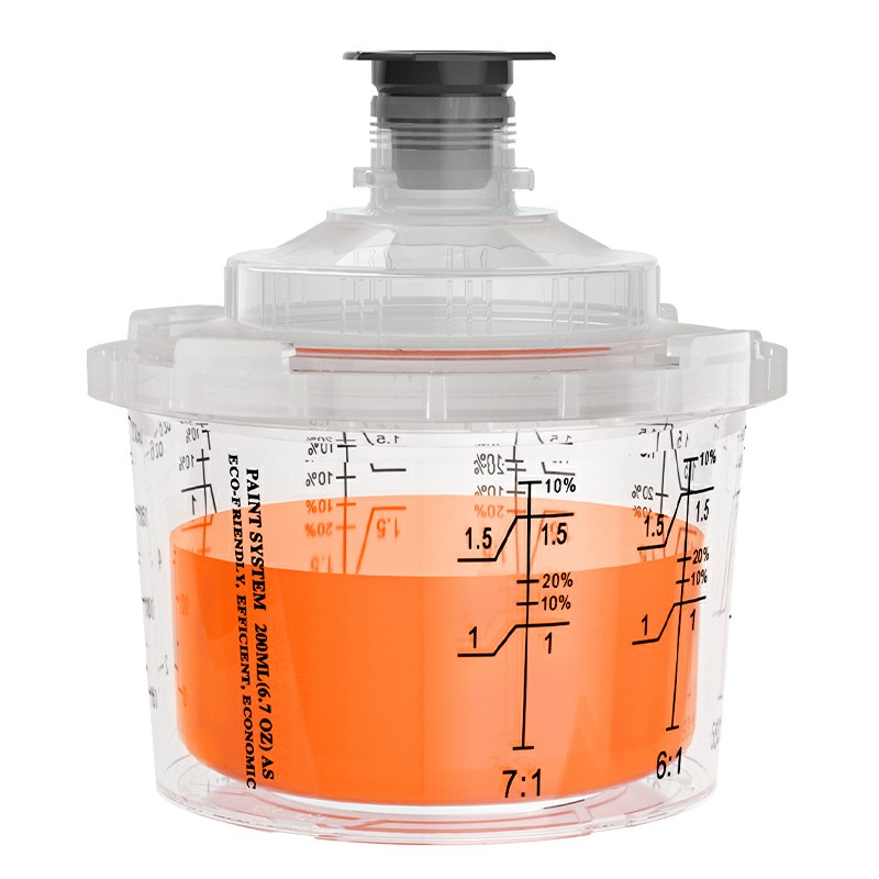 200ml чаша за спрей за еднократна употреба е система за чаша за боядисване за еднократна употреба, проектирана за 1-панел ремонт, тя е подходяща за зони, изискващи 6,8 fl oz (200 ml) или по-малко материал. Той е надстроил дизайна на външната чаша въз основа на серията AYS1.0. Интегрираната ключалка за външна чаша се прави без части на яката, които улесняват сглобяването и разглобяването на чашата за пръскане; Системата за чаша за боядисване на Ays3.1 серията е новата чаша за спрей за еднократна употреба на Ayspat, която значително подобрява ефективността и качеството на целия процес на смесване на бои, пръскане и съхранение.