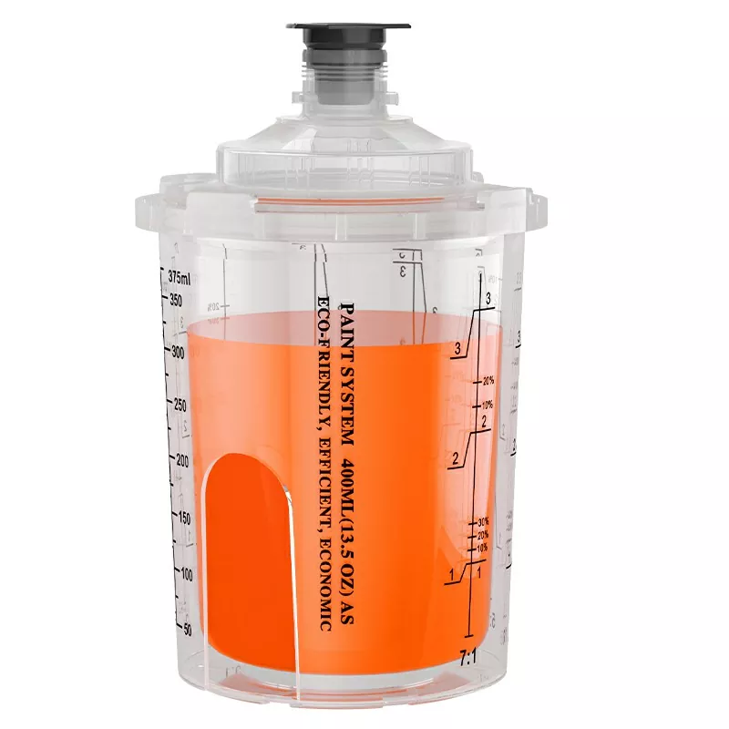 400ML Disposable Spray Cup System е чаша за боядисване за еднократна употреба, предназначена за ремонт на 2 панела, подходяща е за зони, изискващи 13,5 фуид унции (400 ml) или по-малко материал, като например брони. Тя е надстроила дизайна на дюзите, базиран на серията AYS1.0. Патентованият дизайн на дюзата не само подобрява уплътняването, но и подобрява ефекта на пръскане. Като производител на системи за спрей чаши за еднократна употреба в Китай, AYSPAT непрекъснато оптимизира дизайна на чаши за спрей за еднократна употреба, ние сме ангажирани с изследването, разработването и производството на по-удобни и ефективни чаши за спрей за еднократна употреба.