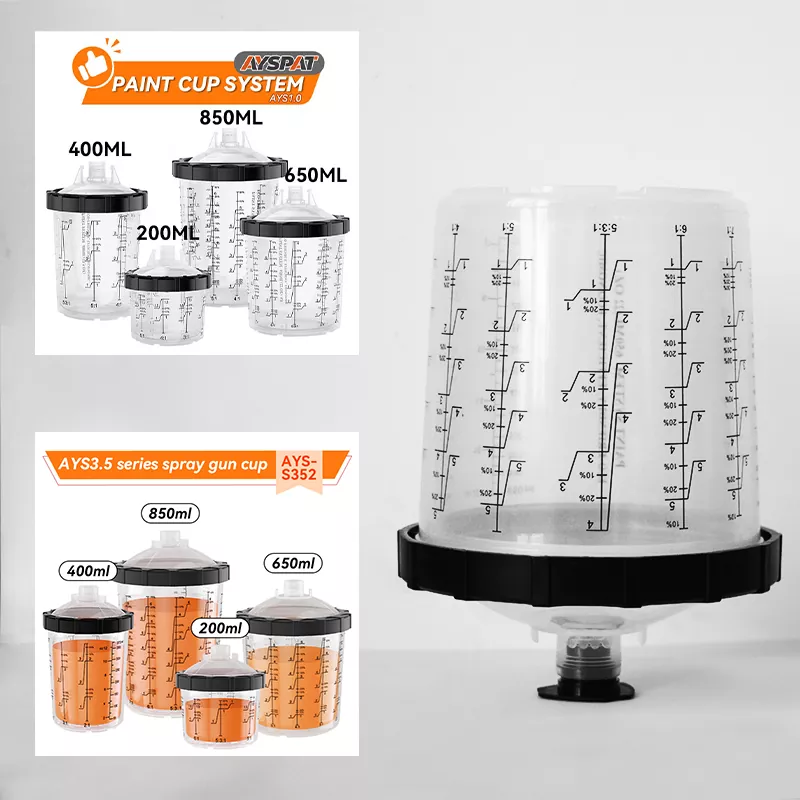 След непрекъснати усилия, Qingdao Aspaint пусна своя нов патентован продукт – 650 ml Speedy Paint System 2.0. Разширената дюза плюс новият дизайн на направляващата ограда на капака поддържат по-удобно и ефективно боядисване. Външната чаша и картонената опаковка поддържат персонализирано лого, засилвайки влиянието на вашата марка. Освен това предлагаме и размери от 200 ml, 400 ml и 800 ml, за да отговорим на различни ситуации и нужди на бояджиите. Използвайте всяка част от боята, за да постигнете нулеви отпадъци при боядисване!