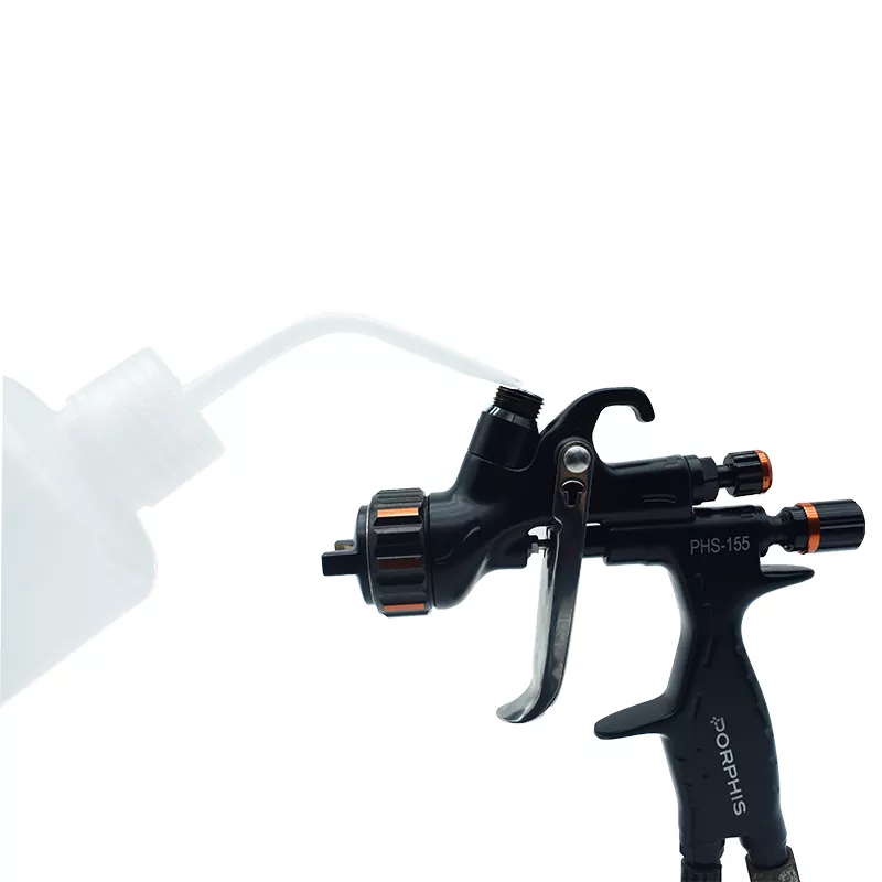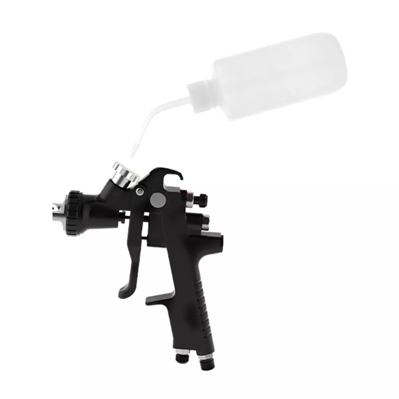 Уникалната извита дюза на бутилката за почистване на спрей може бързо да промие остатъчната боя в пролуките дълбоко вътре в пистолета за пръскане, което може ефективно да предотврати блокирането, причинено от изсушаване на боя, да удължи експлоатационния живот на пистолета за пръскане и да сведе до минимум времето за разглобяване на пистолета за пръскане за почистване.